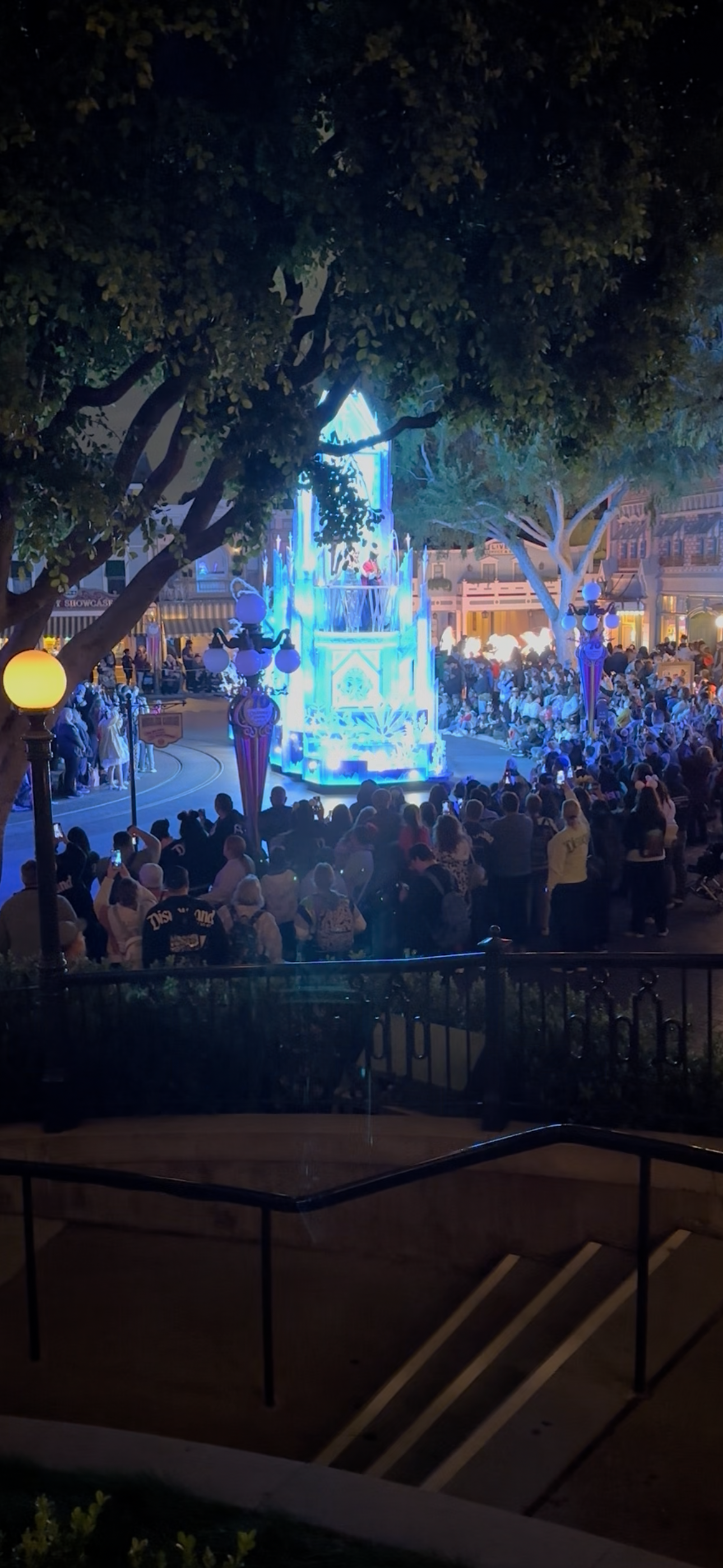 Frozen float from the Main Street Train Platform (right side - facing parade)
